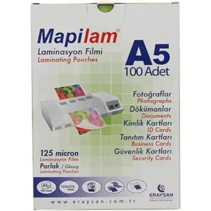 Mapilam Laminasyon Filmi Sıcak Parlak Kimlik 65x95 125 MIC 100 LÜ 102 12 14 (100 Adet)